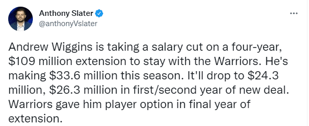 4年1.09亿!维金斯正式降薪续约勇士 合同细节曝光拥有球员选项