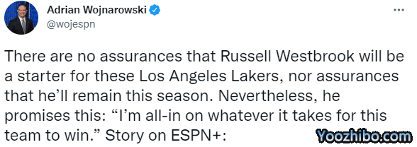 来源:jrs直播网09-26 11:13jrs直播网09月25日,ESPN名记沃纳罗斯基撰文报道,即使没有获得留队保证和首发保证,威少仍旧表示:我会全力以赴帮助湖人获胜;这就是深陷交易流言之中时,威少的心态,甘愿担任任何角色,仍相信湖人三巨头不可阻挡。