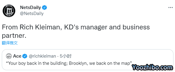 KD经纪人疑似透露杜兰特归队 名嘴希望欧文别让篮网卷入场外麻烦