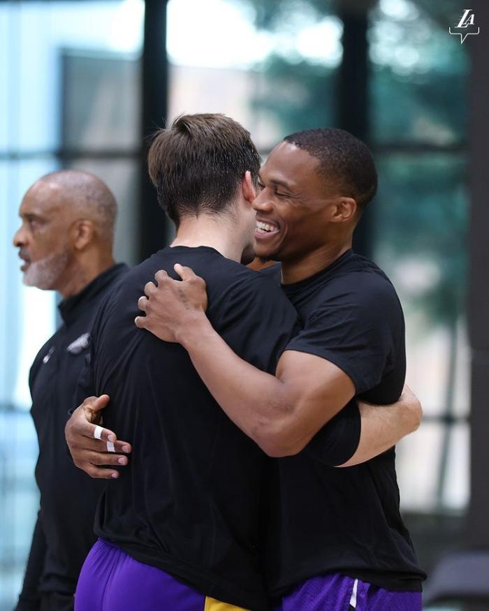 湖人官方公布:全队训练威少拥抱队友咧嘴大笑 贝弗利展示新款球衣