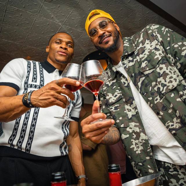 来源:jrs直播网09-14 15:15jrs直播网09月14日,湖人球星威少亮相位于纽约的Vin Sur Vingt酒吧,为安东尼的红酒品牌VII(N) 捧场。安东尼晒出的动态中,威少和甜瓜碰杯合影,威少还拿着红酒冲着镜头说:“我为我的兄弟Melo而来,祝贺你,Melo,坚持你所做的事,这瓶我就带走了。干杯!”