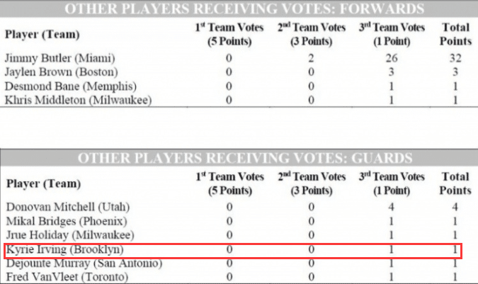 尴尬!欧文获1张最佳阵容选票,仅出战29次,场内外引发争议