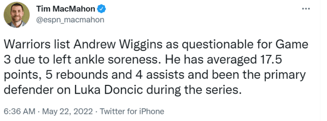 对于勇士来说,维金斯有伤在身,是一大隐患。毕竟,小佩顿还无法回归,伊戈达拉也继续缺阵,如果维金斯不能打,谁来防守东契奇将成为一个重要难题。