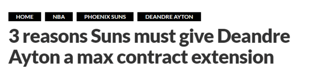 艾顿同届的东契奇、亚历山大、波特和特雷-杨,都已经得到顶薪合同,艾顿当然不愿意接受一份更低的薪水。名嘴帕金斯表示:“太阳都已经给了保罗一份1.2亿的合同,他们没理由在艾顿顶薪的问题上犹豫。他为了球队做出不小的牺牲,他本可以去拿更好的数据,去竞争全明星资格,但他为了团队的利益,没有那么去做,让个人目标服从于团队目标。”大家认为太阳该给艾顿一份顶薪合同吗?
