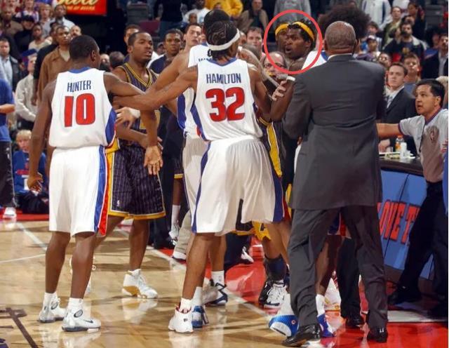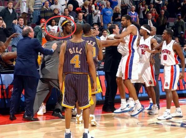 在奥本山宫殿事件中,被本华莱士逼得认怂的阿泰斯特躺在了技术台上调训,活塞球迷格林向阿泰斯特扔了一杯啤酒,起身后的阿泰斯特误认球迷威廉姆是挑事者,迅速冲上前,按住威廉姆就是一顿暴打。