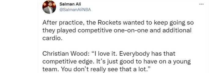 来源:jrs直播网10-02 10:57jrs直播网10月02日讯 ,火箭为了备战新赛季,球队在休斯顿开始了训练营。在今天的训练结束之后,伍德接受了记者采访,并谈到了自己新赛季的队内角色。