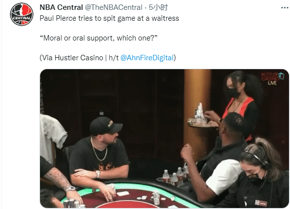 来源:jrs直播网09-08 11:42jrs直播网9月08日讯 ,凯尔特人名宿保罗-皮尔斯又一件丑闻曝光,在赌场当众调戏女服务员;此前因与多名脱衣舞娘直播的不雅视频被ESPN解雇,现在又当众调戏美女,44岁皮尔斯真是为老不尊,真忘了当年被捅11刀了吗?
