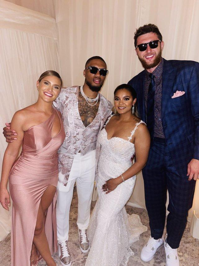 利拉德的队友努尔基奇,甚至不远万里带着女友从波黑赶回美国参加婚礼。美媒报道称,两地距离8047公里,为了兄弟的婚礼,努尔基奇真是够上心。此前,他曾表示如果利拉德被交易,他自己也会离开波特兰。另一位队友麦科勒姆也更新社媒,晒出利拉德婚礼上的照片,同时也公布了一个喜讯,他就要成为一名父亲。