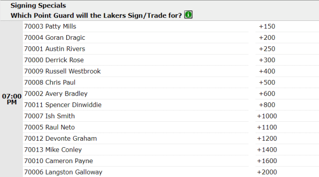 湖人控卫引援赔率出炉!米尔斯领跑罗斯第四,威少保罗也上榜