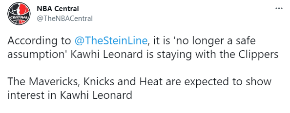 来源:jrs直播网07-24 10:47jrs直播网讯 北京时间7月24日,据名记MarcStein报道,快船巨星小卡是否留队的不确定性正在增加;独行侠、尼克斯、热火都对引援小卡表达出了兴趣,其中独行侠将尽一切努力去得到小卡。
