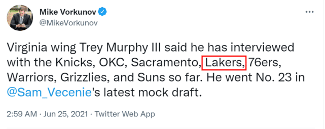 在NBADRAFT网站的预测顺位上,他排在首轮第13位,是有望进入乐透区的新秀。他面试了不少球队,其中包括湖人、快船和雷霆。湖人要想选择他,只能指望他最终顺位下滑。