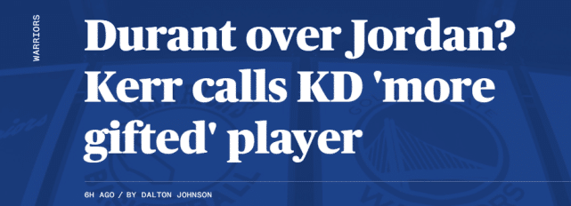 科尔和乔丹一起赢下过两座总冠军,他了解乔丹,也了解杜兰特。对比两人的天赋,科尔说道:“我认为他(杜兰特)更有天赋,我真的这么想。凯文是一个完全不同的球员,他身高6尺11,拥有后卫的技能,不受限制的三分射程,能传球能盖帽,他在篮下的盖帽太棒了。今年再次看到他打球,我很欣慰。”