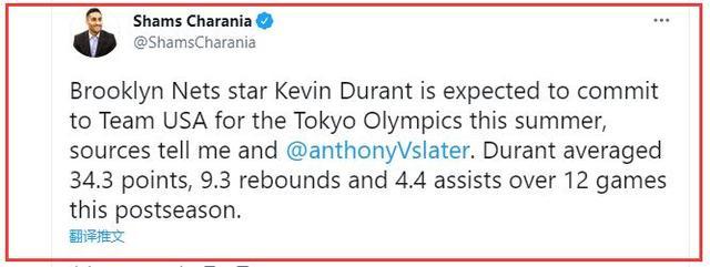 赛季结束了,可是篮网队的麻烦似乎还没有结束。为什么这样说呢?在系列赛结束后,名记SHAMS爆料,杜兰特承诺将出赛东京奥运会。显然这个决定让篮网队的球迷很担心,毕竟杜兰特是受过跟腱大伤的,而且杜兰特本赛季已经拼得筋疲力尽,带着疲劳的身体继续备战、征战奥运会,放弃休赛期的恢复,这对于杜兰特来说不是明智的选择。