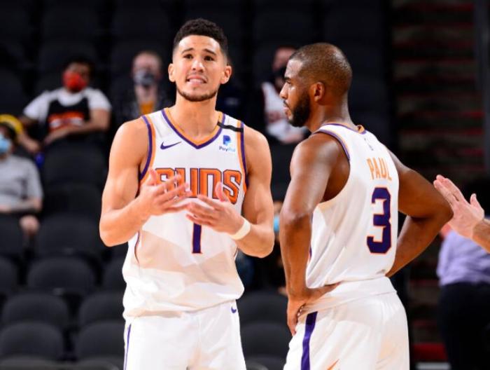 布克40+三双伸手指庆祝,第一时间和保罗通话,名记:保罗很快复出