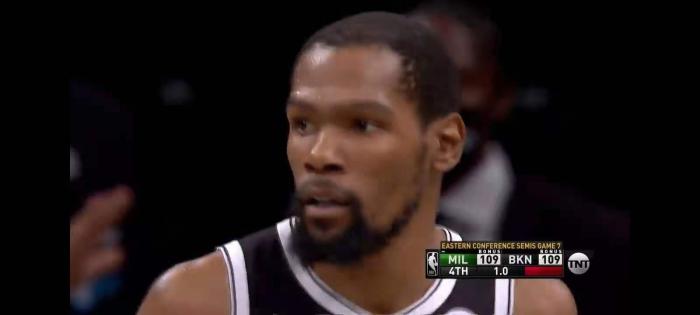 常规赛的48分钟,当篮网队一次次陷入困境,杜兰特一次次挺身而出,当哈登依旧缺乏杀伤力,当乔哈里斯依旧扮演着卧底的情况,杜兰特在常规赛时间解决了所有的问题。比赛来到最后时刻,篮网队依旧落后4分,此时解决球队的依旧是杜兰特,无解的干拔投篮将比分追进。