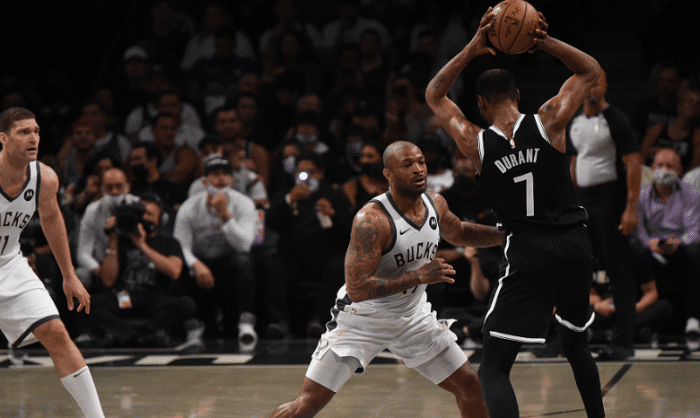 比赛结束之后,大家热议最多的是杜兰特在第四节还剩下1秒投进的大号2分,当时篮网只落后2分,杜兰特迎着塔克的防守命中了踩着三分线的一球,扳平比分,这个球也将系列赛拖入到了加时赛。很可惜的是这个球不是三分球绝杀,赛后杜兰特谈到这点的时候也是爆粗,称自己本来有机会将雄鹿送回家的,可惜的是投出的最后那个球不是三分。