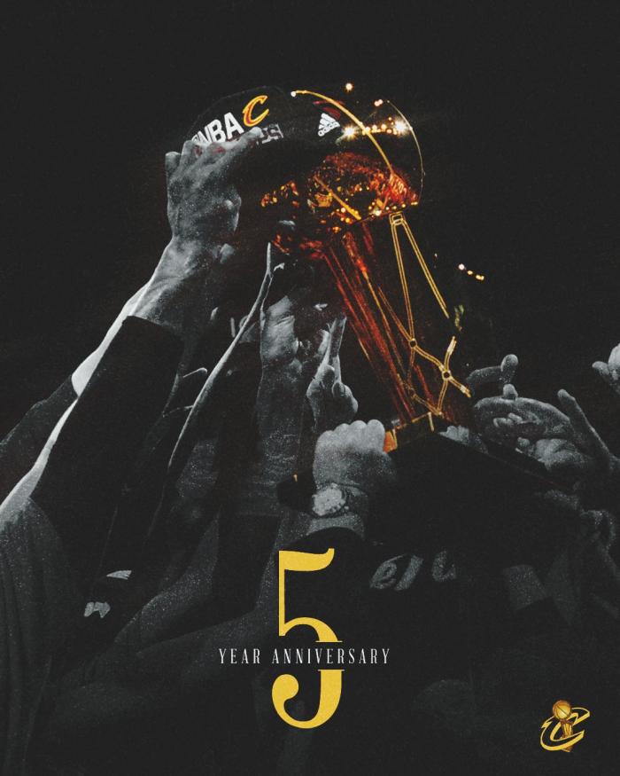 骑士夺得队史首冠五周年,勒布朗-詹姆斯也转发多条动态,抒发心声。