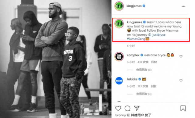接下来,我们再来说说布莱斯的大日子。6月18日,布莱斯迎来了自己的14岁生日,他也得到了詹姆斯的允许,可以开通自己的社交媒体。在布莱斯开通社交媒体后,詹姆斯也主动@了布莱斯并发文表示:欢迎我年轻的国王。