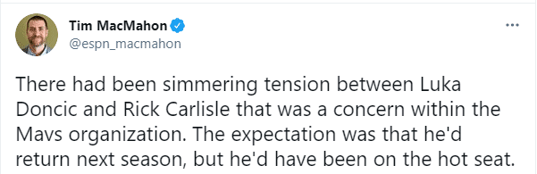 独行侠主教练卡莱尔突然宣布辞职,正式告别执教13年之久的球队,为何突然离队?最大原因是卡莱尔和东契奇之间的关系紧张,独行侠内部十分担忧。虽然卡莱尔表示这完全是自己的决定,但还剩两年合同仍旧宣布辞职,独行侠内部确实有些乱。