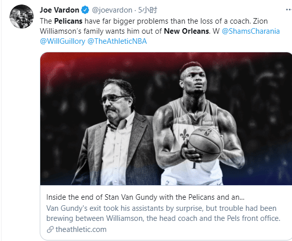20岁锡安对鹈鹕管理层表达不满,锡安的家人更是想要锡安离队;现在鹈鹕内部也乱了,虽然解雇了大范甘迪,但鹈鹕的一些不守诚信的操作惹怒了锡安;目前锡安的新秀合同还剩下两年,鹈鹕不仅要在休赛期物色主教练,而且要围绕着锡安和英格拉姆重新打造阵容。