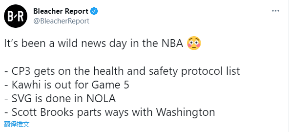 奇才主帅布鲁克斯与球队分道扬镳,因为双方在新合同上没有达成一致;鹈鹕解雇大范甘迪,大范仅执教一年就下课,最大原因就是大范和球员关系不好,其中他和英格拉姆之间的关系十分紧张;另外独行侠总经理尼尔森宣布辞职,此前美媒曝独行侠管理层内部混乱。