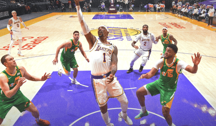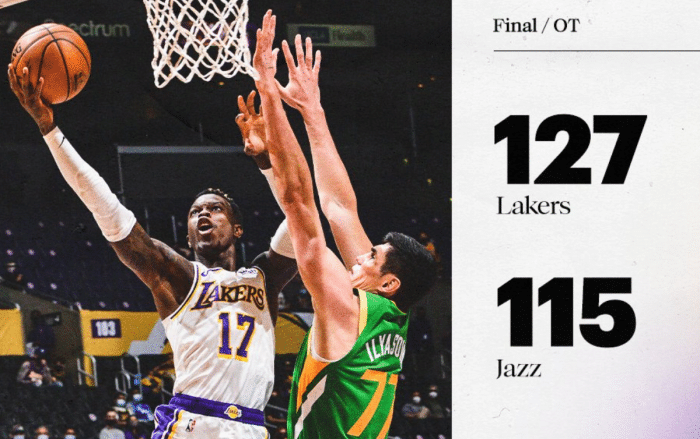 来源:jrs直播网04-18 15:50jrs直播网讯北京时间4月18日,湖人主场对阵爵士,戈贝尔、米切尔、费沃斯、康利均缺席,而詹姆斯和浓眉哥也继续养伤。双方都缺少主力,紫金军团最终通过加时以127比115获得胜利!