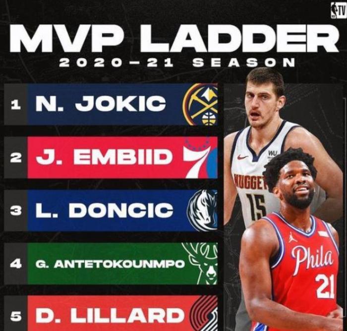 最新一期MVP排行榜单出炉:哈登无缘前五,库里第九,约基奇蝉联榜首