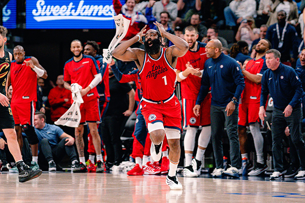 昨天快船在主场击败联盟第一的骑士,比赛期间,哈登戏耍莫布利一球引热议,当时哈登在外线持球单挑莫布利,疯狂炒菜后大秀双变向,晃晕莫布利秀翻全场,登哥更是双手抱头激情庆祝。