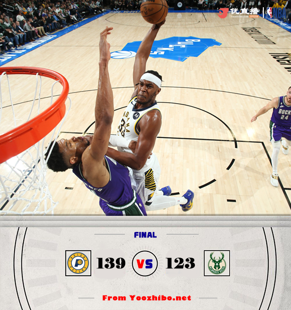 jrs直播网3月17日讯 NBA常规赛,雄鹿今日迎战步行者,前者两连胜后继续高居东部榜首的位置,后者上场比赛则是不敌活塞暂列东部第十二位,此役大洛佩兹、克劳德、阿伦、哈利伯顿、杜阿尔特和马瑟林缺战,希尔德和特纳复出。比赛上来,雄鹿就率先进入状态打出10-3的开局取得领先,分差也逐渐达到了两位数,次节步行者开始发起反扑并成功抹平分差,好在是雄鹿此后及时调整,打出一波攻势给出回应,半场结束时步行者依旧落后9分;下半场回来双方突然展开对攻,虽然雄鹿单节拿到37分,但步行者的攻势更加凶猛,狂砍49分后实现反超,末节雄鹿的情况还是没有好转,步行者乘胜追击将分差拉开到十分以上,雄鹿没有再获得任何机会,最终步行者139-123轻取雄鹿拒绝连败。