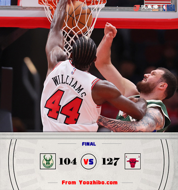 jrs直播网10月12日讯 NBA季前赛,公牛对阵雄鹿。公牛这边武切维奇率领轮换阵容,雄鹿则是尽遣替补。一开场,前半段雄鹿稍稍占优,公牛一波14-3领先7分结束首节。次节上来,双方大打对攻,分差始终紧咬,半场战罢公牛61-59领先2分。易边再战,公牛持续发力取得两位数领先,雄鹿努力追赶,三节打完公牛89-79领先10分。第四节,公牛牢牢占据主动将分差拉开到20分以上,雄鹿无力回天。最终,公牛127-104大胜雄鹿。