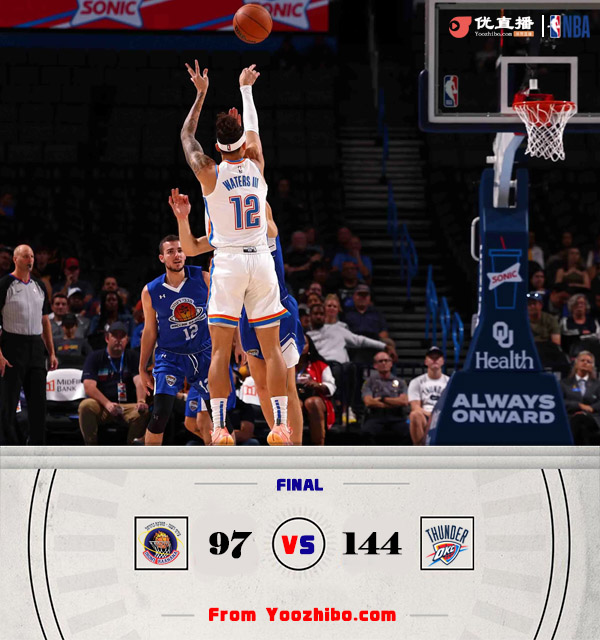 jrs直播网10月10日讯 NBA季前赛,雷霆对阵马卡比拉阿纳纳。雷霆本赛季继续培养新人,本场比赛亚历山大、基迪均不会出战。一开场,双方难分伯仲,比分始终紧咬,雷霆连续命中三分带着4分优势结束首节。次节上来,雷霆持续外线开火,辛格斯突然发力独得16分,但雷霆持续发力多点开花,半场战罢以71-54领先17分。易边再战,雷霆牢牢占据场上主动,一波10-0将分差拉开到30分以上。马卡比无力招架,雷霆不断扩大优势,三节打完雷霆领先42分。第四节,雷霆轮换阵容依旧占据主动,比赛早早失去悬念。最终,雷霆大胜马卡比。