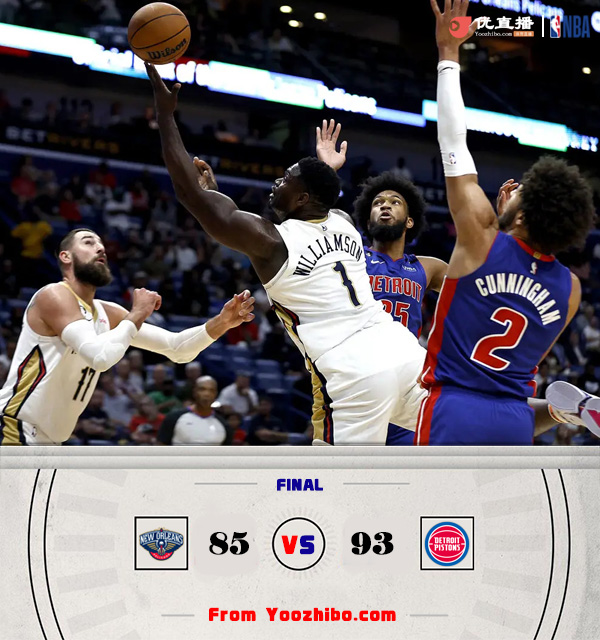 jrs直播网10月8日讯 NBA季前赛继续进行,鹈鹕对阵活塞。鹈鹕迎回了更加精壮的锡安,新赛季值得期待。活塞这边休赛期引进多位实力派强援,康宁汉姆也得到了迅速成长。英格拉姆和麦科勒姆本场比赛不会出战。一开场,活塞率先发力连续打出进攻高潮取得领先,鹈鹕回敬10-0的攻势在首节结束时反超1分。次节上来,两队大打对攻,鹈鹕持续发力内外开花,以59-51领先进入下半场。易边再战,锡安连得6分带队取得两位数优势,活塞奋力反击连中三分一度追赶,鹈鹕一波6-0带着6分优势结束第三节。最后一节,双方继续缠斗,鹈鹕始终保持微弱领先,康宁汉姆得分助攻一肩挑带队追赶,西布龙关键上篮得手,最终,鹈鹕险胜活塞,取得胜利。