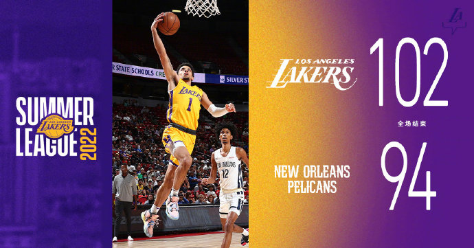 jrs直播网讯7月16日讯 NBA拉斯维加斯夏季联赛继续进行,湖人对阵鹈鹕,湖人新秀中看点有两位名宿之子,小皮蓬和小奥尼尔,还有35号秀克里斯蒂;而鹈鹕8号秀丹尼尔斯还没有亮相。湖人上来先打出不错开局,但鹈鹕也能凭借中投手感咬住比分,佩蒂接连扔进三分连砍8分帮助鹈鹕取得领先,次节鹈鹕进攻端显得无章可言,而湖人外线则是火力全开,以斯维德为首的射手群接连下起三分雨,湖人也连续打出小高潮反超了8分。第三节,斯维德继续保持上半场的火热手感里突外投帮助湖人将分差拉开至双位数,鹈鹕多次缩小分差,湖人依靠外线三分总能回应,末节湖人换上替补练兵,但外线手感能保持住,分差保持在10分左右,最终湖人力克鹈鹕。