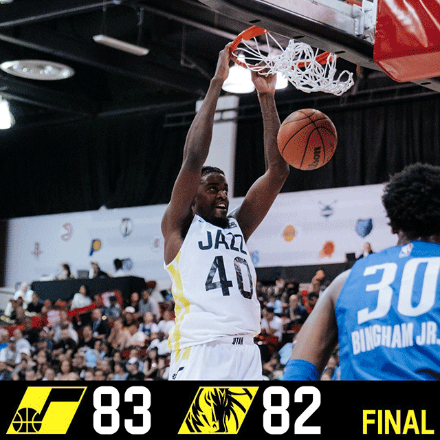 jrs直播网7月12日讯 NBA拉斯维加斯夏季联赛激战正酣,首战力克老鹰的爵士迎战独行侠,后者首秀中加时惜败公牛,今年的37号新秀杰登-哈迪独得28分,代表独行侠出战的中国球员郭昊文首战并未出场,此役一上来两队状态低迷频频打铁,中段哈丁找到状态为独行侠连续取分,首节他里突外投独得12分,帮助独行侠领先5分结束首节争夺,次节回来,独行侠多点开花一度占优,但中段爵士及时回暖打出10-2小高潮,巴特勒压哨勾手打进,半场战罢,爵士反超2分。易边再战后双方火热对攻比分紧咬,中段爵士连中三分继续占优,法尔肆虐内线予取予求,三节结束后爵士已经领先8分,末节上来,爵士一度将分差扩大到两位数,中段独行侠稳扎稳打蚕食分差,双方分差一度只剩1分,关键时刻朱赞外线对飚哈迪,法尔摘下关键篮板,最终爵士83-82险胜独行侠。