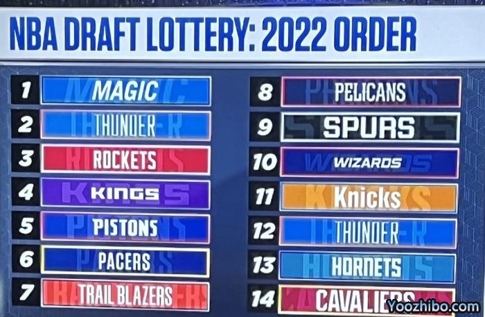 jrs直播网讯 北京时间5月18日讯 2022年NBA选秀抽签仪式今日进行,根据常规赛战绩,火箭、魔术和活塞、雷霆(本身12.5%+快船签1.5%)均有14%的概率抽中状元签,步行者(10.5%)也有超过10%的概率。其中魔术抽中状元签,雷霆抽中榜眼签,火箭抽中探花签,湖人的8号签最终归属鹈鹕。最终,魔术喜获状元签!雷霆获得榜眼、火箭获得探花、国王第四。