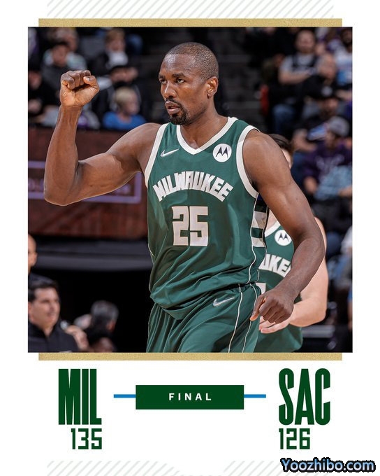 雄鹿(44-26):米德尔顿32分8篮板8助攻2抢断,字母哥36分10篮板2助攻2抢断,波蒂斯12分6篮板3助攻,阿伦6分3篮板,朱-霍勒迪21分4篮板3助攻4抢断,马修斯8分6篮板2助攻3抢断,伊巴卡8分2篮板,希尔6分2篮板,卡特3分4篮板