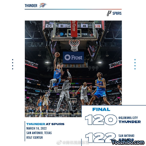 jrs直播网3月17日讯 NBA常规赛,马刺主场迎战雷霆。在波波维奇登顶教练胜场数第一后球队又遭遇了2连败,剩下的目标只有锻炼新人。雷霆已然遭遇6连败,亚历山大多次成为空砍群群主。一开场,马刺率先发力迅速取得两位数领先,雷霆多点开花顽强追赶,马刺领先8分结束首节。次节比赛,雷霆大举反击将比分扳平,马刺连中三分夺回优势,半场战罢马刺68-56领先12分。易边再战,雷霆打出8-0的攻势缩小分差,马刺连中三分扩大优势,贝兹利和亚历山大合力贡献16分顽强咬住,三节打完马刺领先7分。第四节,雷霆一波11-0将比分反超。马刺回敬9-3的小高潮重夺领先,关键时刻波库干扰凯尔登的扣篮并连得5分带队反超,沃克三分命中,亚历山大错失反绝杀三分,马刺惊险过关。
