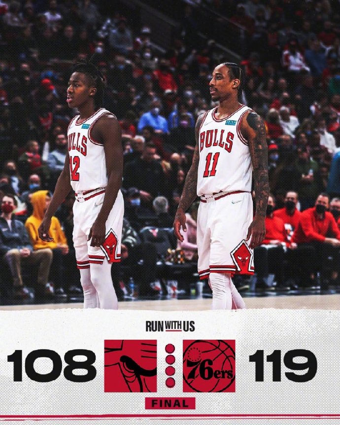 jrs直播网2月7日讯 NBA常规赛继续进行,公牛主场迎战76人,公牛目前33胜19负高居东部榜首的位置,而76人虽然恩比德力挽狂澜,但由于伤病等因素,暂时31胜21负排在东部第5位,本场拉文继续伤缺。开局双方上来就展开对攻战,恩比德和德罗赞分别撑起各自球队的进攻,后半节76人抓住公牛的得分荒通过外线连续发炮建立起领先,次节76人继续保持住优势,恩比德内线无人可挡一度帮助76人将优势拉开至15分,但德罗赞继续保持自己不错的手感帮助公牛回应小高潮止血,76人依然保持9分领先。第三节76人找到外线手感,在恩比德带领下重新将分差拉开至双位数,公牛进攻端只能靠德罗赞个人能力勉强咬住8分分差,末节76人先打出9-0小高潮拉开比分,但武切维奇站出来帮助公牛迅速回应13-0续命,恩比德上来后又连续强打内线重新稳住两球以上领先,德罗赞独木难支,最终76人力克公牛,止住连败。
