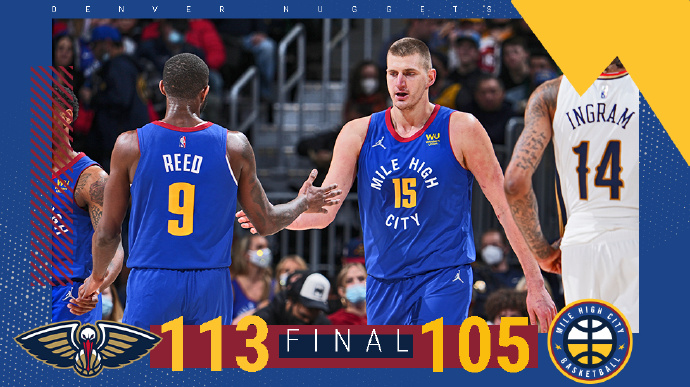 jrs直播网2月5日讯 NBA常规赛掘金对阵鹈鹕,掘金近来遭遇2连败,戈登因为腿筋不适缺阵。开场后约基奇上来连得7分展现不错状态,但鹈鹕多点开花紧咬比分,两队连续在外线对飙三分,首节掘金领先2分。第二节掘金外线依旧手感火热不断命中三分,英格拉姆站出来带领球队紧咬比分,上半场掘金52-51领先鹈鹕。下半场回来场上比分仍旧胶着,约基奇再次展现进攻欲望接连拿分,不过瓦兰和英格拉姆两人轮番砍分帮助鹈鹕仍旧紧咬比分,三节过后两队打成平手。第四节两队仍旧打得一片火热,第四节后半段鹈鹕通过提速抓反击取得领先,其中琼斯表现优异,虽然掘金通过三分续命,但又是琼斯最后连续制造杀伤帮助鹈鹕守住胜果,他末节6中6独得18分,最终鹈鹕113-105送掘金3连败。