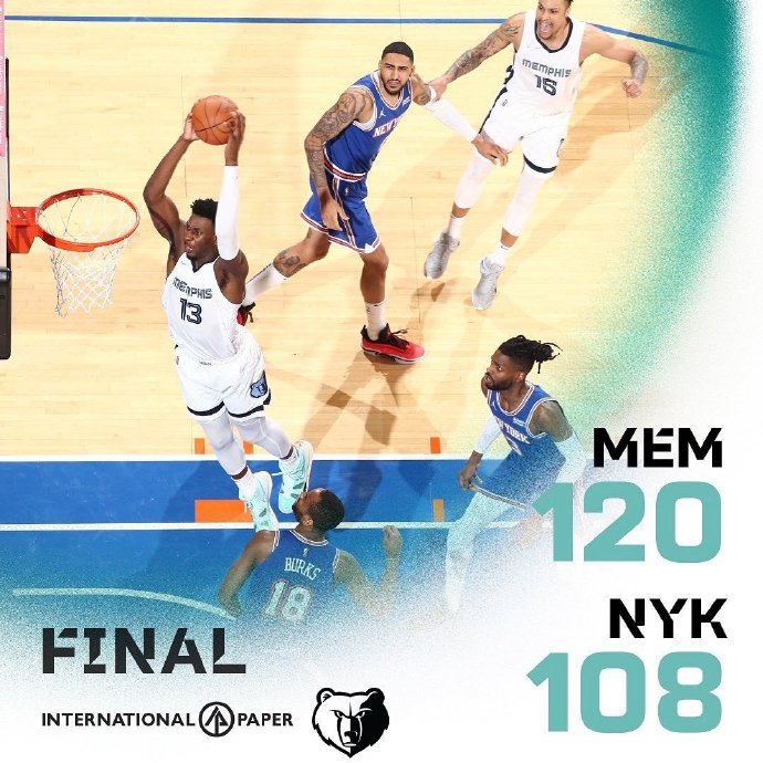 jrs直播网2月3日讯 NBA常规赛,尼克斯今日迎战灰熊,前者上场比赛大胜国王排名东部第十一位,后者则是惜败76人暂列西部第三位。比赛上来灰熊就率先进入状态取得领先,虽然尼克斯及时调整将比分追至11-11平,但在首节末段灰熊还是将分差拉开到了两位数,之后的比赛尼克斯一直处于落后,半场结束时灰熊领先12分。易边再战,尼克斯虽然多次发起反扑,分差也是回到个位数,但始终没能获得反超的机会,兰德尔更是在最后时刻吃到个人第二次技犯被驱逐,最终灰熊轻取尼克斯避免连败。