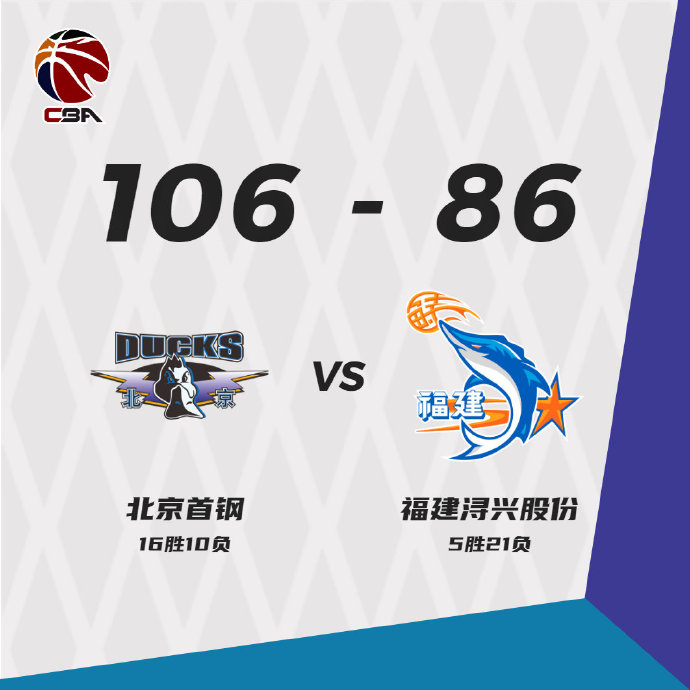jrs直播网 1月23日讯 CBA常规赛继续进行,上场大胜四川的北京迎战福建,后者上场力克青岛,此役陈林坚轮休缺阵,比赛开打后福建打出13-4攻击波一度占优,吉布森及时发力率队回应,首节结束时双方战成28平,次节回来,福建进攻突然断电仅靠高登一人苦苦支撑,范子铭予取予求单节独得12分,北京连续打出得分高潮扩大优势,半场战罢,北京已经领先23分。易边再战后高登崴脚离场,雪上加霜的福建进攻端越发低迷,林书豪和范子铭连进中投,三节结束后北京已经领先30分,末节上来,双方陆续换上替补阵容,福建进攻回暖但无奈分差过大,比赛提前失去悬念,最终北京106-86轻取福建迎来两连胜。