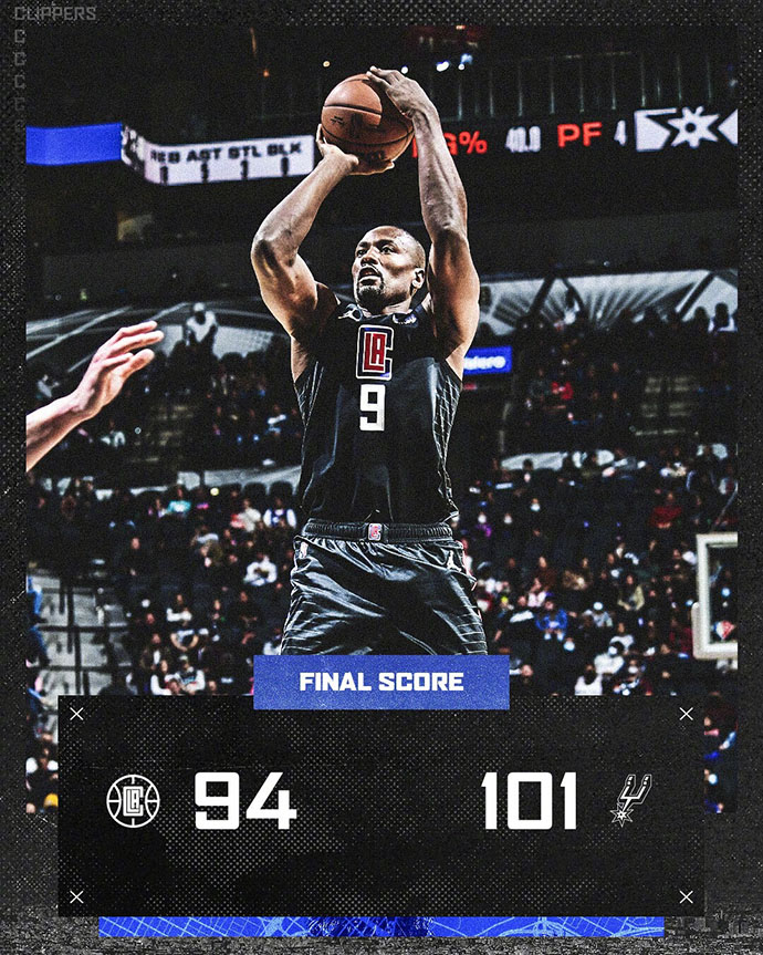 jrs直播网01月16日讯 NBA常规赛迎来西部球队直接对话,已经五连败的马刺主场迎战快船,后者上场惨败鹈鹕,此役一上来快船内外结合打出8-0小高潮,穆雷联手凯尔登及时回应,最后3分钟内双方进攻停滞,仅由巴图姆罚球得到1分,首节结束时快船领先1分,次节回来,马刺状态回暖轰出12-0攻击波,随后双方外线火热地标,半场战罢,马刺取得9分优势。易边再战后快船逐渐发力迫近比分,莫里斯联手科菲不断取分,三节结束后快船只落后5分,末节上来,快船打出8-0小高潮一举反超,随后马刺回敬一波10-2夺回优势,关键时刻快船进攻依然没有起色,马刺再度打出8-0小高潮终结悬念,最终马刺101-94力克对手终结五连败。