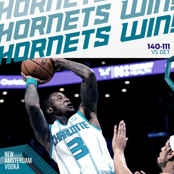 jrs直播网1月6日讯 NBA常规赛继续进行,黄蜂坐镇主场迎战东部倒数第二活塞,本场格兰特,斯图尔特等人继续缺阵。一开场黄蜂进攻状态极佳,打出一波18-7取得领先,随后黄蜂连续失误,活塞借此机会蚕食分差,随后黄蜂连中三分再次拉开比分,活塞则陷入得分荒,以19-37落后进入第二节。次节黄蜂进攻状态不减,继续拉大分差至20分以上,暂停后麦格鲁特和波特连续得分帮助活塞迫近比分,随后双方陷入拉锯战,节末活塞连续命中,而黄蜂仅依靠罚球取分,65-51结束半场。下半场开场双方进入对攻战,在对方禁区予取予求,活塞一度将分差维持在15分上下,但是节末陷入得分荒,黄蜂依靠突破反击和三分再次拉大分差至25分进入末节。第四节开场,乌布雷单节飙中八记三分使比赛失去悬念,活塞则连续进攻禁区维持进攻,最终黄蜂140-111主场大胜活塞。