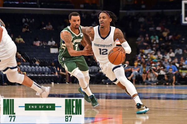 jrs直播网10月6日讯 NBA季前赛,卫冕冠军雄鹿客场迎战灰熊,雄鹿字母哥、米德尔顿和霍勒迪三巨头此役均高挂免战牌。首节灰熊在莫兰特的带领下火力全开,开局一波11-0后便牢牢占据场上主动,次节雄鹿有所复苏,大洛和诺瓦一内一外保住了球队的基本盘,灰熊除了莫兰特外手感均有所下降,好在之前领先较多,他们也带着8分的优势结束上半场。下半场阿伦连得8分一度帮助雄鹿追至只差2分,无奈莫兰特个人能力太过突出,他单节奉献3记暴扣,配合上梅尔顿与杰克逊的出色发挥,灰熊重新稳住阵脚,末节由于现场球馆报警器的问题,比赛临时取消。
