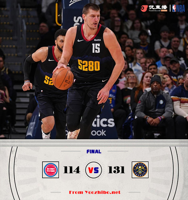 jrs直播网1月8日讯 NBA常规赛继续进行,掘金主场迎战活塞,掘金上场不敌魔术,目前25胜12负继续排在西部第三,活塞近期遭遇三连败后战绩来到3胜32负,继续排名东部垫底。首节一上来双方你来我往比分紧咬,穆雷火力全开单节独得10分,约基奇专注组织首节零出手,活塞连续杀伤内线给予回应,首节结束时掘金领先2分,次节回来,康宁汉姆左膝扭伤提前伤退,穆雷延续火力单节再度贡献14分,率领掘金连续发力扩大优势,半场战罢,掘金继续领先8分,易边再战后沃特森突然爆发连续取分,掘金单节狂轰43分一举拉开比分,三节结束后掘金已经领先23分,末节上来,掘金逐渐换上替补阵容,活塞主力阵容一度缩小分差,但掘金迅速回应终结悬念,最终掘金131-114大胜活塞送对手4连败。