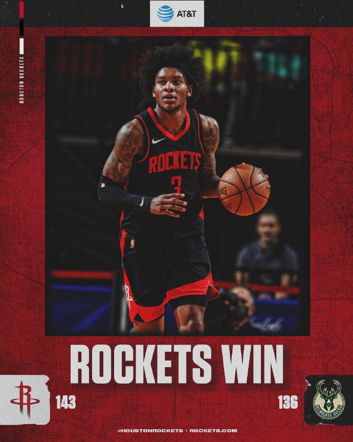 火箭:波特50分5篮板11助攻1封盖、奥利尼克24分13篮板4助攻,泰特12分6篮板3助攻,伍德31分9篮板4助攻,布鲁克斯6分,威尔森15分12篮板