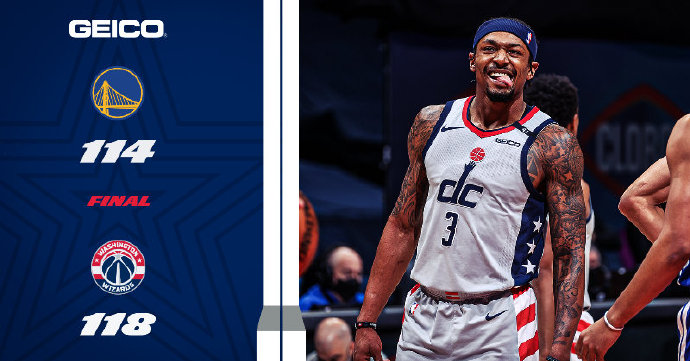 jrs直播网4月22日讯 今日NBA常规赛,勇士客场挑战奇才,勇士过去8战6胜,而奇才目前也已经取得5连胜。比赛开始后,奇才率先找到进攻节奏,打出一波11-0进攻高潮取得领先,勇士连续出现失误而且投篮接连打铁,首节比赛奇才38-20领先勇士18分。第二节比赛开始后,奇才进攻效率降低陷入得分荒,勇士抓住机会开始发起反击,连续打出进攻高潮将比分缩小至只剩2分。下半场比赛开始后,奇才连得7分将将领先优势扩大至9分,之后勇士开始发力,勇士里突外投打出一波13-0将比分迅速,三节战罢,勇士93-86反超奇才7分。最后一节,勇士外线将领先优势扩大至9分,奇才不断冲击勇士内线缩小比分,双方分差一度只剩一分,最后奇才连续突入内线将比分反超,最后奇才118-114力克勇士。