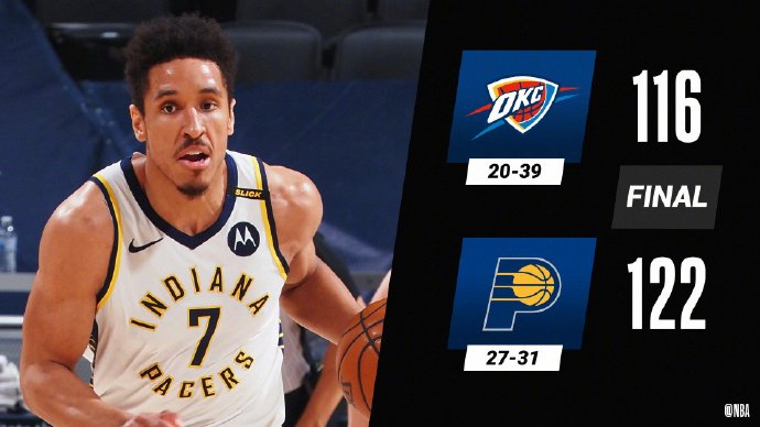 jrs直播网4月22日讯 NBA常规赛,3连败的步行者坐镇主场迎战已经11连败的雷霆,排名东部第9的步行者目前落后排名第8的黄蜂2个胜场,若想更进一步就必须拿下雷霆,萨博尼斯和特纳两大内线缺席了本场比赛。首节步行者的小个阵容火力全开,单节飚中8记3分轻松化解了雷霆的10-0攻势,次节麦康纳继续扮演“球队大脑”角色,不到7分钟上场时间就送出8次助攻,两队大打对攻战分差始终维持在10分左右。第三节雷霆一度依靠贝兹利和布朗的内线优势打出11-0的攻击波将分差缩小到1分,但布里塞特却用职业生涯最高光表现帮助步行者渡过难关,末节雷霆双塔再度发威,无奈他们无法阻挡勒韦尔和布里塞特连续的快打旋风,步行者一波13-5锁定胜局。最终步行者主场122-116击败雷霆,送给对手12连败。