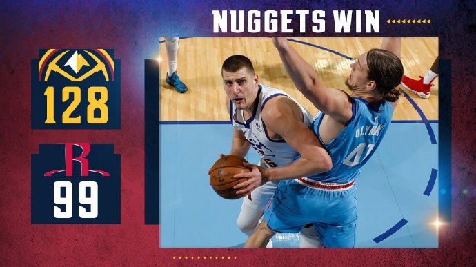 jrs直播网4月17日讯 遭遇4连败的火箭今日坐镇主场迎战掘金,首节对决掘金在抵挡住火箭开局三板斧后迅速控制比赛,节中波特两记三分带队打出18-7的攻势抢到主动权,次节掘金更加强势的进攻很快拉开比分,替补暴走先送一波13-5的攻势拉开比分,末段在火箭状态回暖之下,以约基奇为首的掘金弹无虚发和对手对飙进攻,半场结束时掘金手握整整20分。下半场掘金虽然没有继续扩大领先但牢牢掌控局势,他们顶住火箭几波反扑稳守20分上下的领先,末节以替补阵容打完剩余的比赛。最终,掘金客场轻松击败火箭拿下比赛。