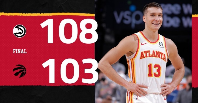 jrs直播网4月14日讯 NBA常规赛,猛龙坐镇主场迎战老鹰,猛龙上一场刚刚遭遇败仗,老鹰则是已经取得两连胜,本场比赛特雷-杨、加里纳利、科林斯、范弗利特等多人缺席,洛瑞轮休。开场两队外线手感不佳,得分集中在禁区,随后古德温飙中第一记三分,率领老鹰打出9-0小高潮拉开比分,但很快猛龙又将比分追平,节末西亚卡姆连续得分,并且投中猛龙本场比赛第一记三分,老鹰也在外线予以回应,首节结束,老鹰28-27领先一分。次节两队连续在外线开炮,老鹰依靠更好的命中率逐渐拉开分差到两位数,猛龙则由西亚卡姆苦苦支撑,中场结束前0.6秒,许尔特接后场发球空接上篮打进,老鹰66-54领先猛龙。易边再战,猛龙一度将分差缩小到六分,但是博格丹作为主攻点带领老鹰很快稳住局面,猛龙也没有保持进攻延续性,只能强打篮下得分,三节结束老鹰依然领先12分。末节猛龙篮下连续打成再度蚕食分差,但是外线手感依旧惨淡,反观老鹰,以博格丹为首的射手群保持火热的外线手感,很快重新拉大分差,最后两分钟弗林连中四记三分,但已无力回天,老鹰108-103击败猛龙取得三连胜。